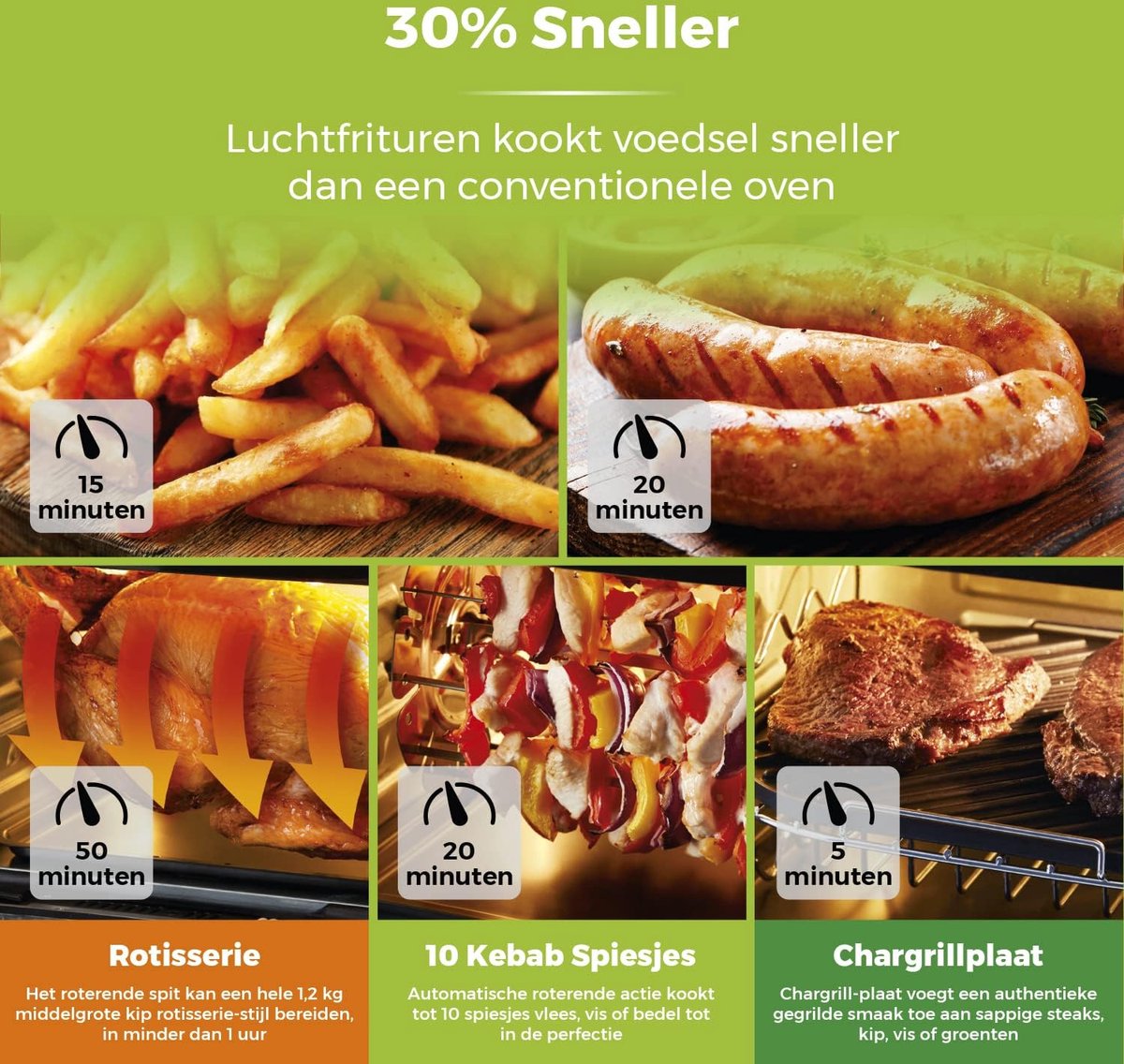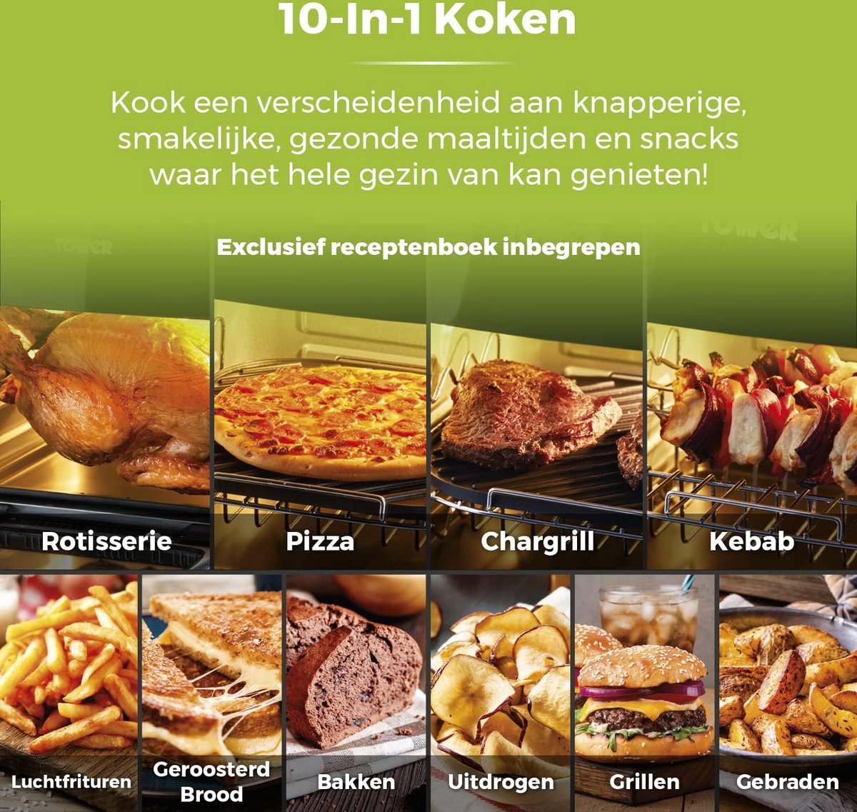 Bestel vandaag nog en ervaar de kracht en veelzijdigheid van onze 10-in-1 heteluchtfriteuse. Maak koken makkelijker, gezonder en leuker dan ooit tevoren. Jouw culinaire avontuur begint hier!