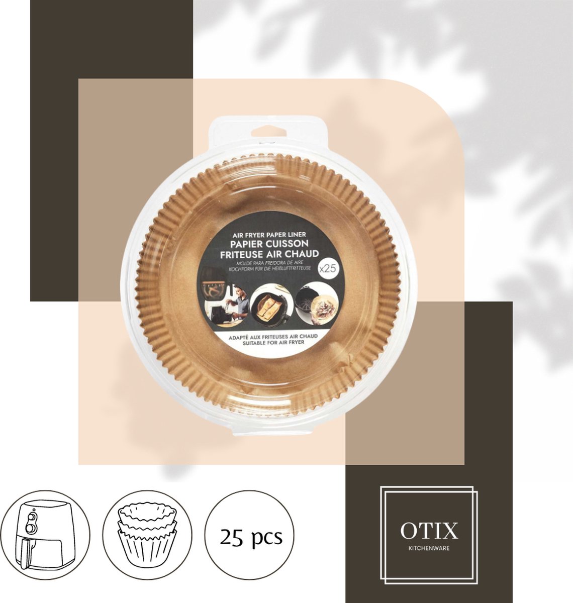 Maak kennis met het OTIX Airfryer Bakpapier, de slimme en praktische oplossing om jouw kookervaring nog gemakkelijker en verfijnder te maken. Deze set van 25 ronde bakvellen is speciaal ontworpen om perfect te passen in de meeste standaard airfryer-modellen. Of je nu bakt, grilt of bradert, met dit bakpapier wordt koken een moeiteloze en schoner ervaring.