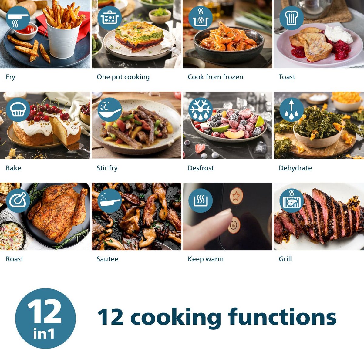 Met de Philips 1000-serie Airfryer zit je nooit zonder inspiratie. Dit apparaat biedt maar liefst 12 automatische programma's, van frituren en grillen tot roosteren en bakken. Of je nu zin hebt in een snelle snack of een uitgebreid diner, je past eenvoudig de tijd en temperatuur aan voor het beste resultaat. Laat je culinaire creativiteit de vrije loop en experimenteren met nieuwe smaken en technieken.