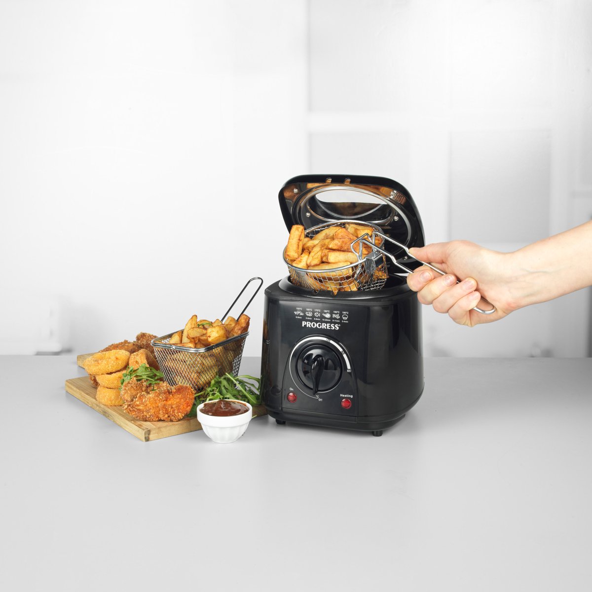 Ben je op zoek naar een snelle, gezondere manier om goudbruine frietjes, smaakvolle uienringen, knapperige kip en verse vis te bereiden, zonder dat je hiervoor veel ruimte nodig hebt? Ontdek dan deze veelzijdige Progress heteluchtfriteuse! Met een strak, compact ontwerp past deze kleine krachtpatser moeiteloos op je aanrecht, ideaal voor éénpersoonshuishoudens, caravans of vakantiehuizen.