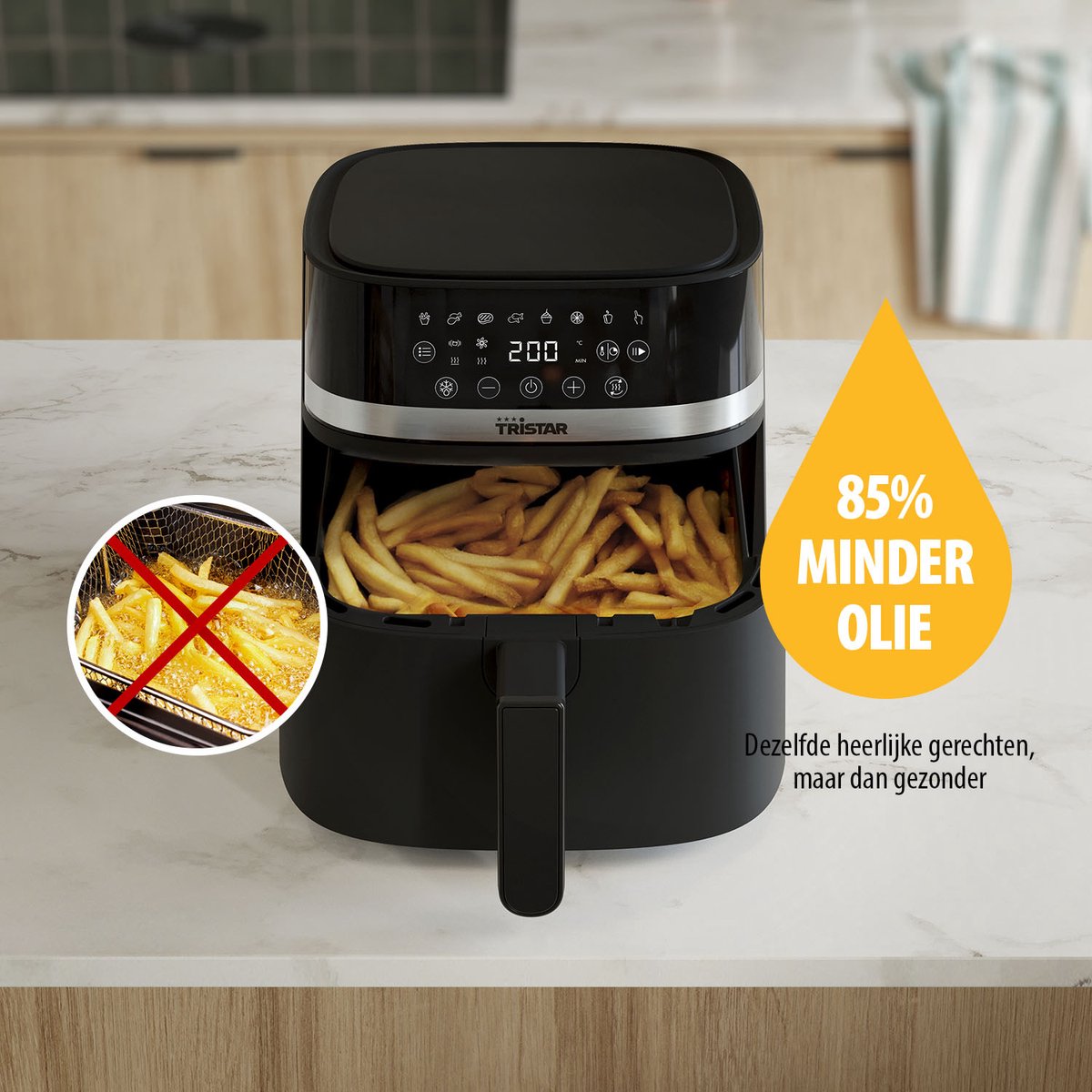 Maak kennis met de ultieme keukenhulp die gezond en smakelijk koken moeiteloos maakt: de Tristar FR-9416 6L Digitale Airfryer. Dankzij het strakke matzwarte design en gebruiksvriendelijke digitale bedieningspaneel brengt deze airfryer niet alleen functionaliteit, maar ook stijl in jouw keuken. Met een krachtige 1700W motor en geavanceerde technieken garandeert deze airfryer perfect resultaat bij elke bereiding, of je nu wilt frituren, bakken of grillen.